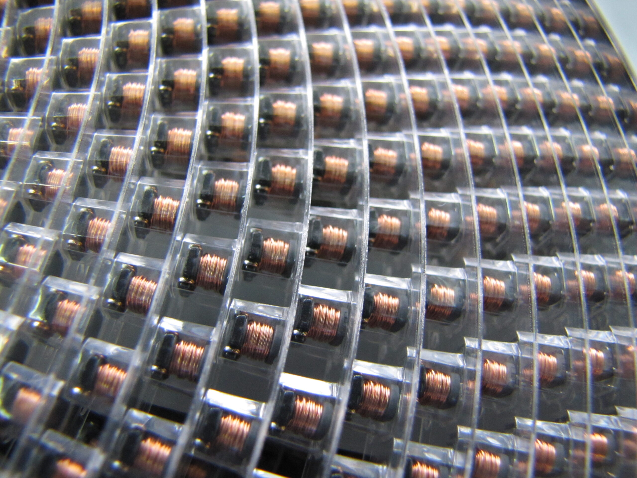 Inductive elements intended for packing are fed to the machine on pallets. Chokes picked up by the suction cup in the centring head are transferred to the electrical measurement station. The measurement system checks the inductance and resistance of the choke. If the electrical parameters are within the specified tolerance, the choke is inserted into the lower tape. After passing through the roller set, the chokes are packed between the lower and upper tapes glued together. The packed tape, thanks to the tape drive unit, is wound onto the take-up reel. A product that exceeds the tolerance is rejected into the container of non-compliant products.