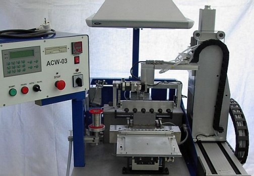 The ACW-03 machine is used for automatic tinning by immersion of leads. Leads can be wrapped on metal tips, on bobbin projections or on ferrite cores.