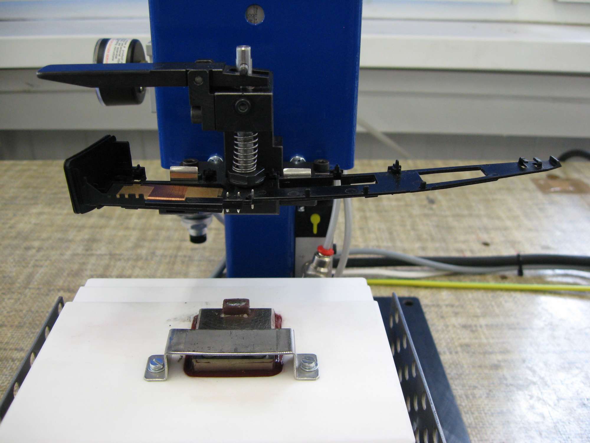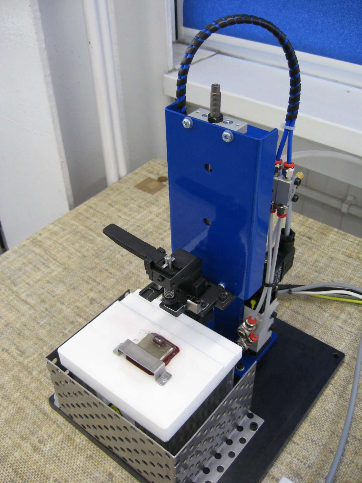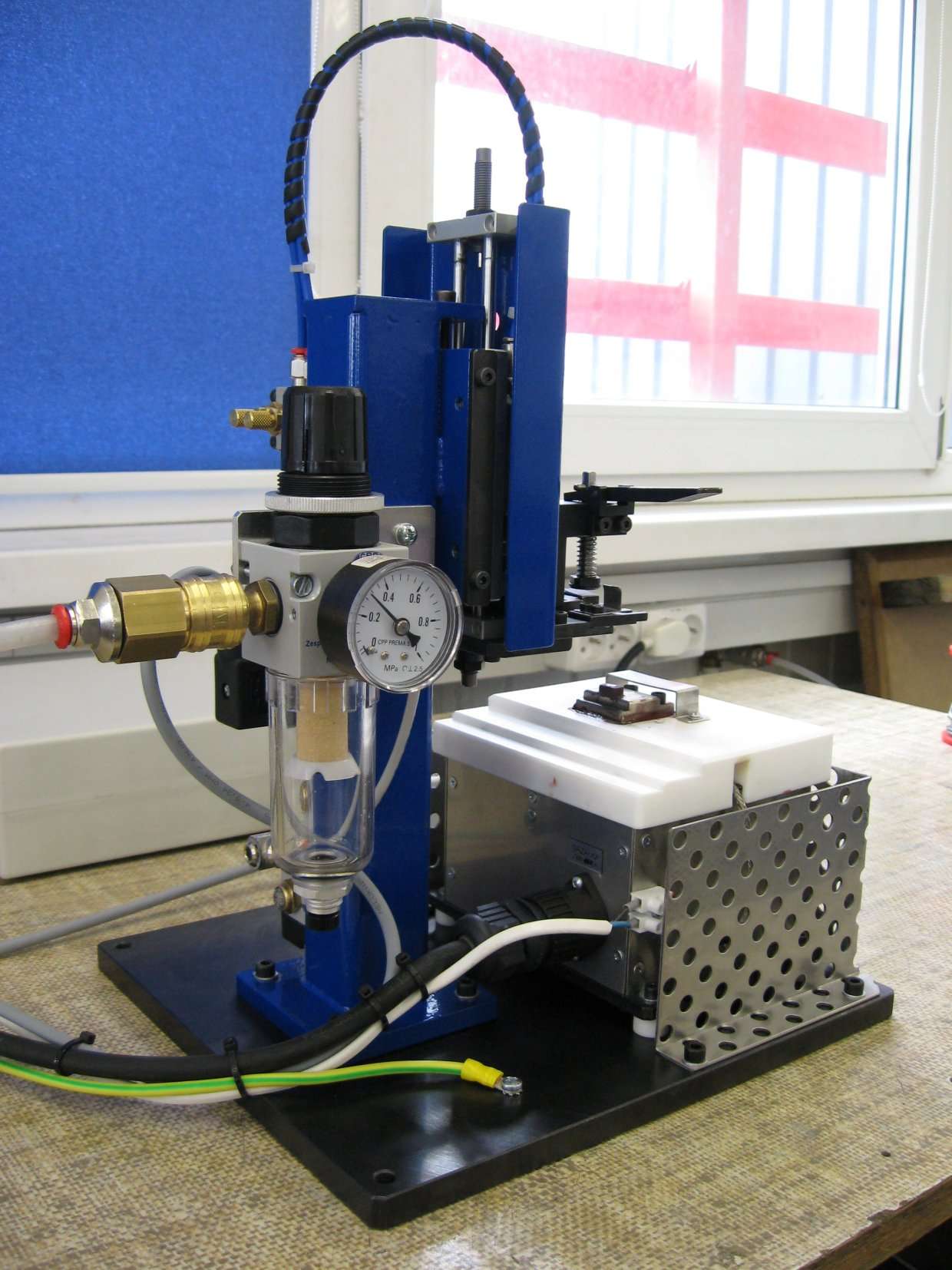 The soldering device is designed for use in industrial conditions. Lead-free tin alloys are intended for soldering. The soldering time range is set by means of a time relay and allows soldering in the range of 0.5 to 5 seconds.