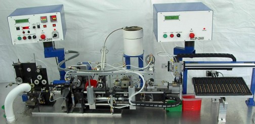 Specialized machine for the production of the Z2.9/7 type choke. The choke is used in airbag triggering systems in cars.