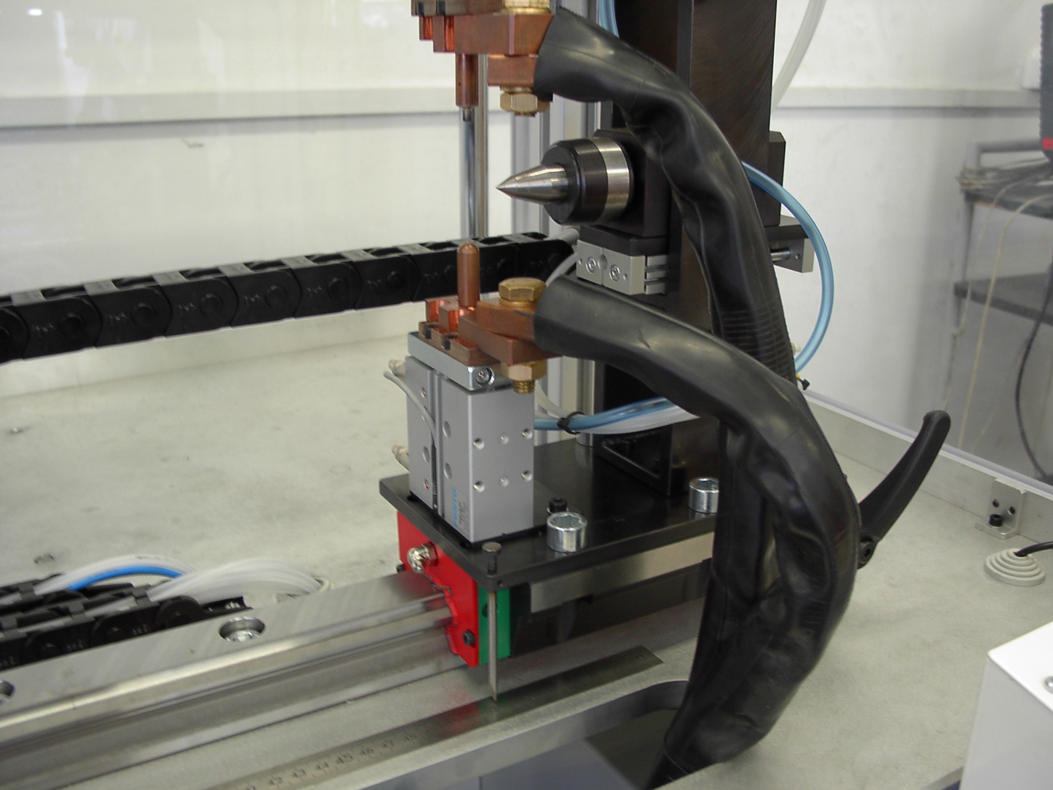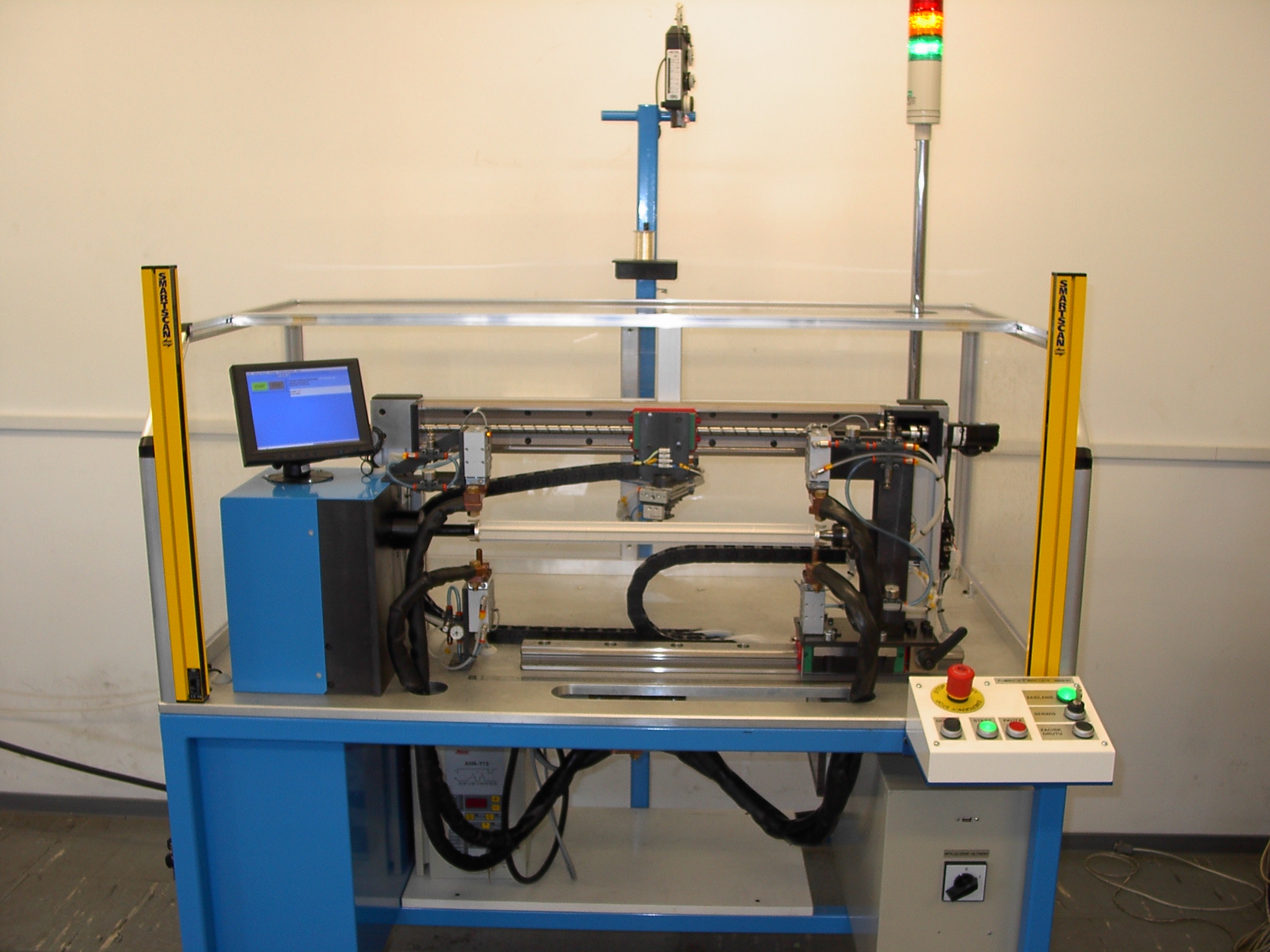 Maszyna wyposażona jest w zgrzewarkę rezystancyjną i dwie pary elektrod. Jedna z par jest stała, druga zaś jest umieszczona na zespole konika. Dzięki temu możliwe jest nawijanie wielu długości wsporników zmieniając tylko położenie konika.