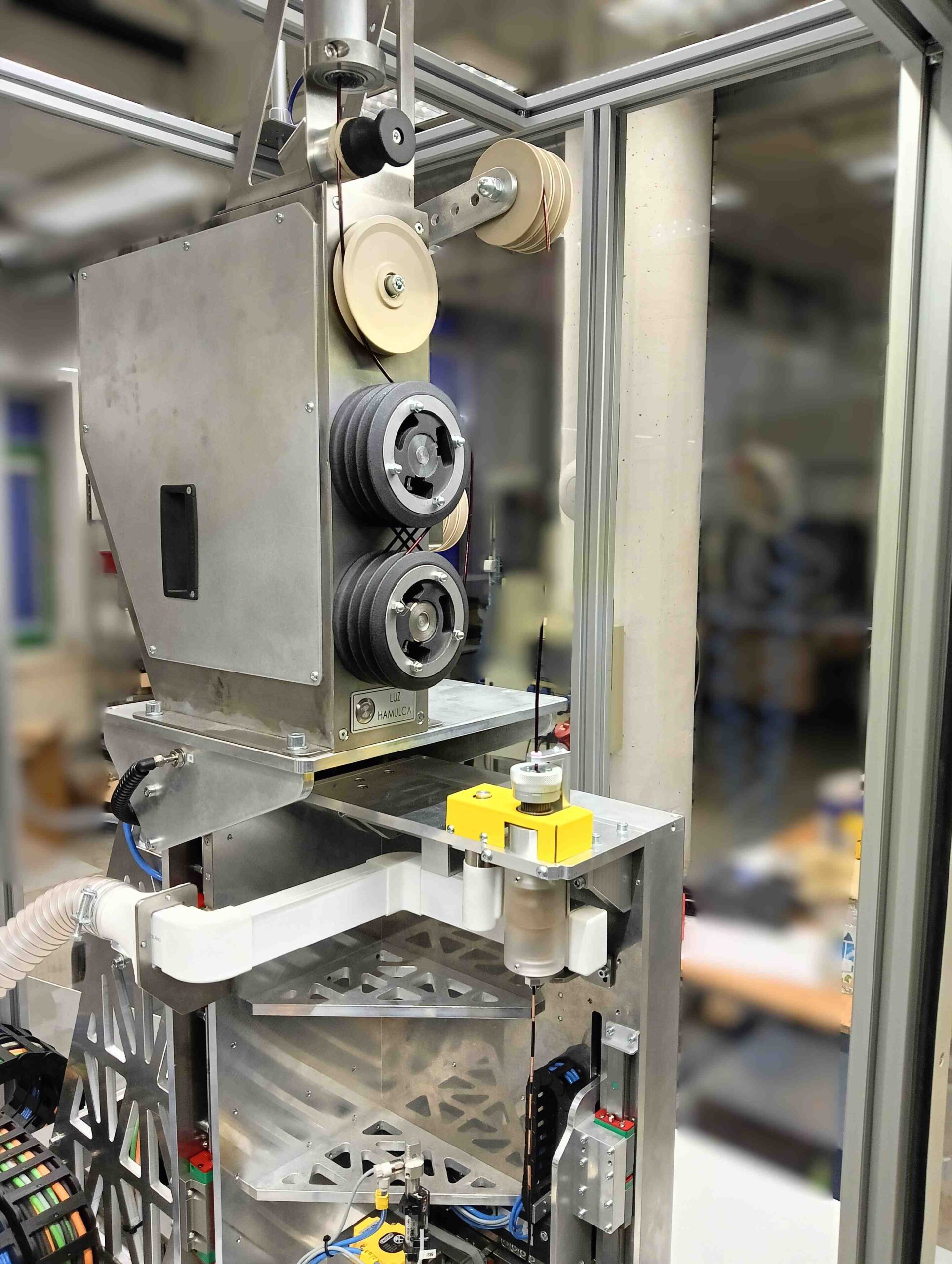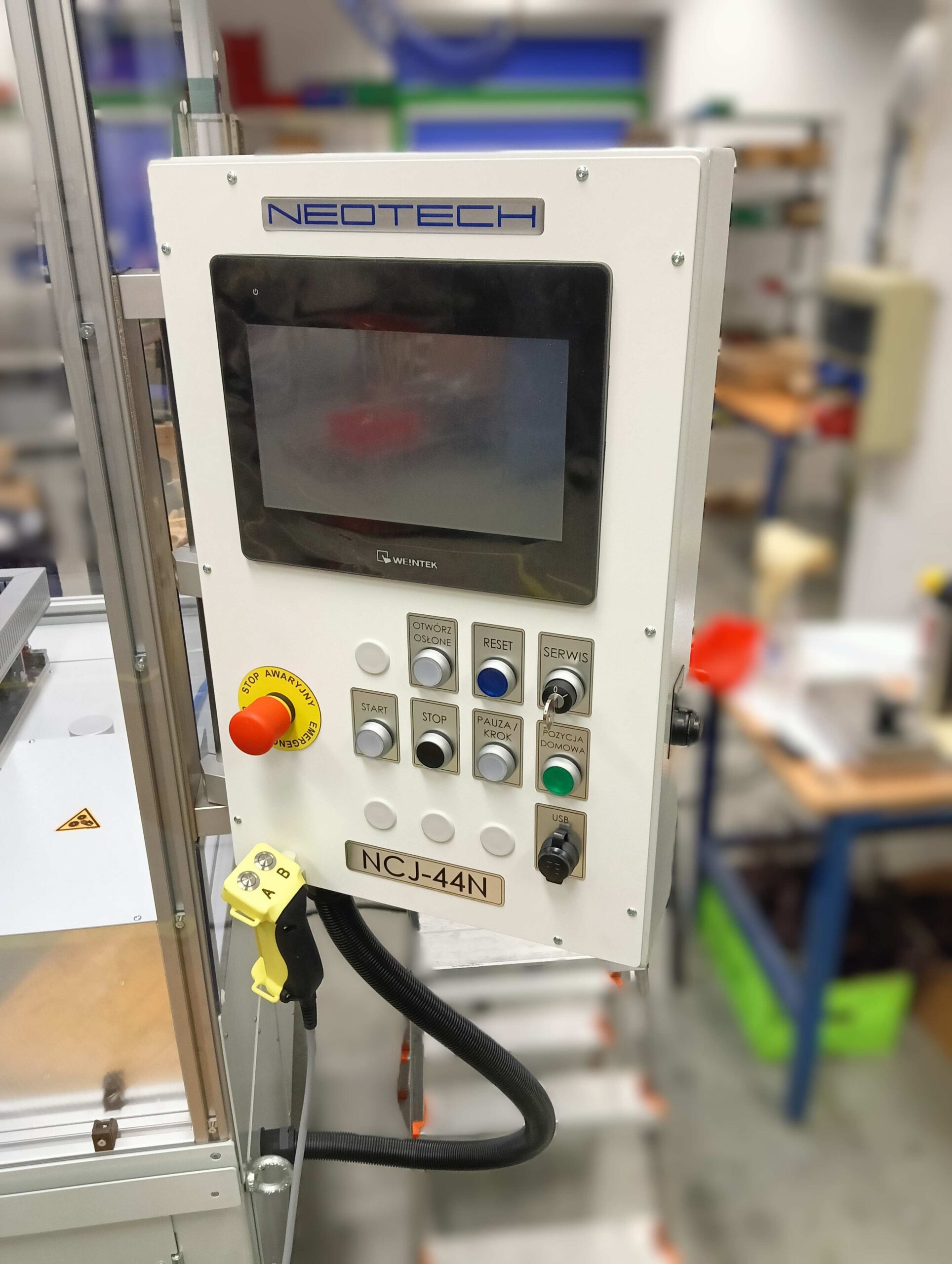 W skład maszyny NCJ-44N wchodzi napinacz drutu, zaczyszczarka izolacji drutu oraz zespół nawijania z zaciskiem drutu.