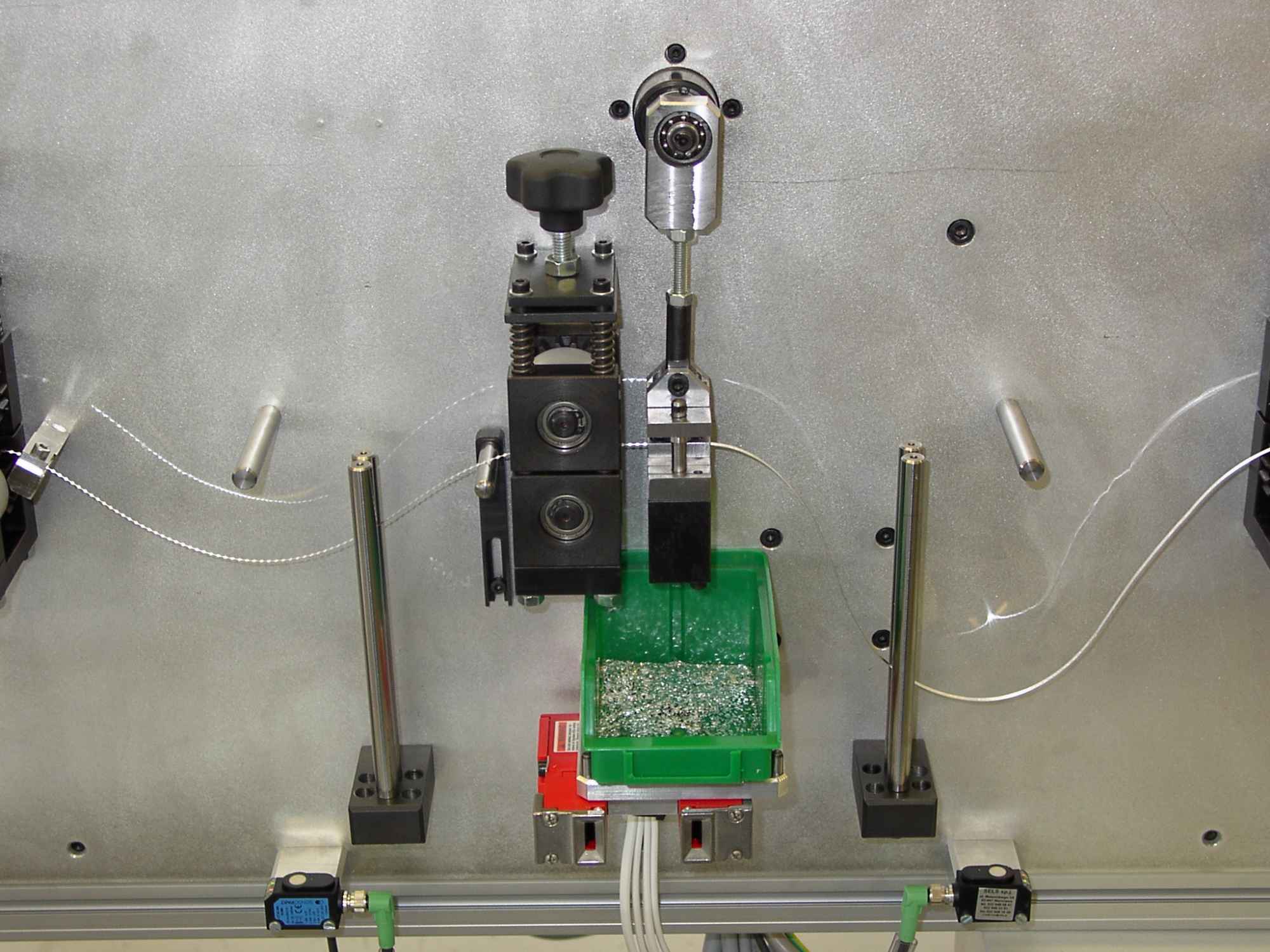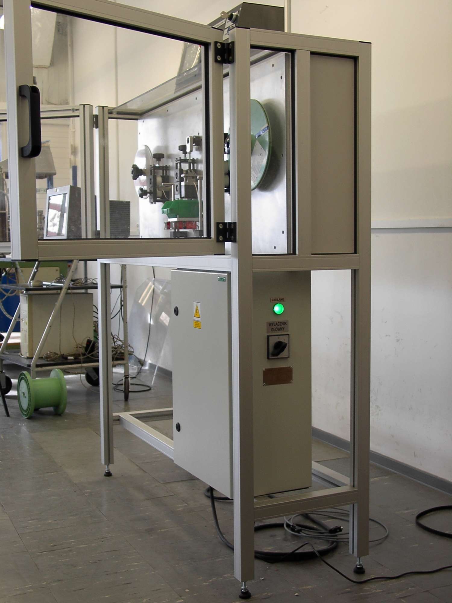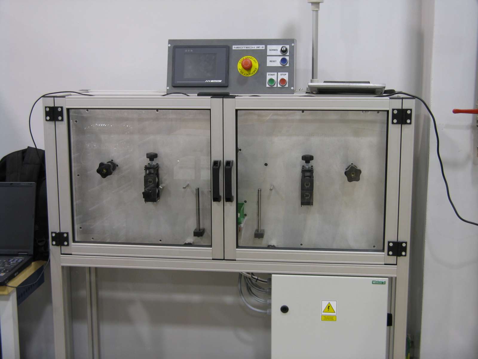 Maszyna UWT-01 służy do wykrawania przewężeń w taśmie srebrnej do bezpieczników wysokonapięciowych. Urządzenie umożliwia wykrawanie taśmy o grubości z zakresu: 0,03 ÷ 0,4 [mm].